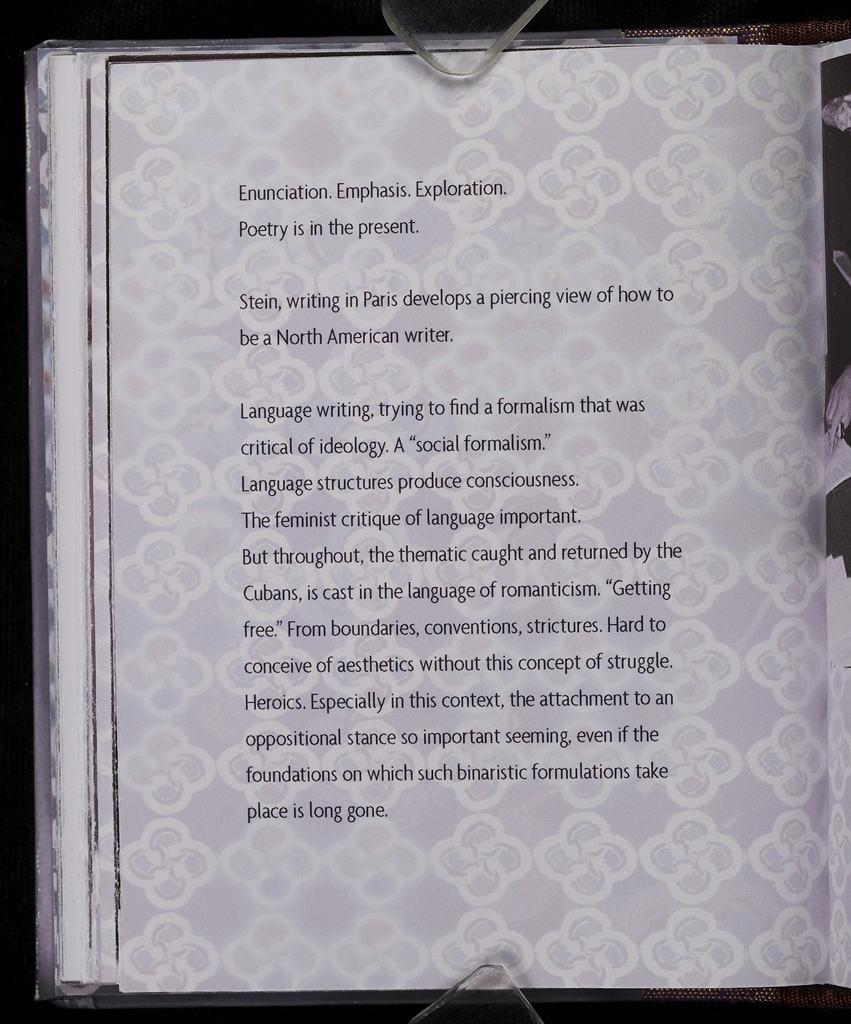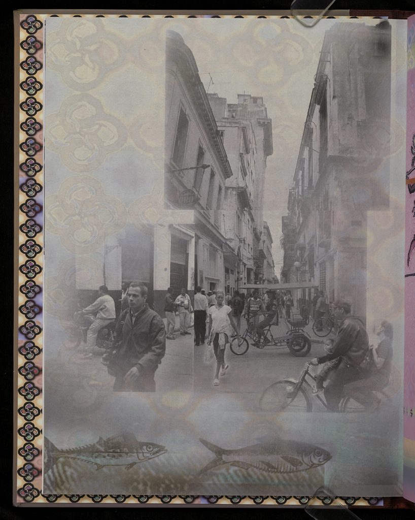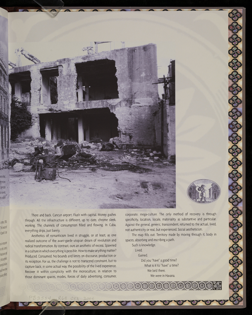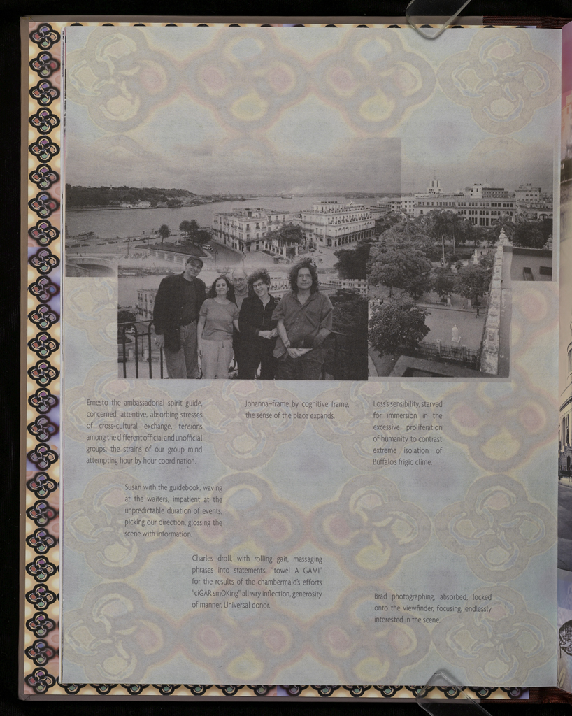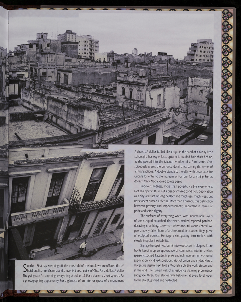 Brad Freeman took pictures during the Havana trip and Johanna Drucker took notes. Then Freeman made collages, designed and laid out the book, printed and produced it in all particulars, including the binding and box making.