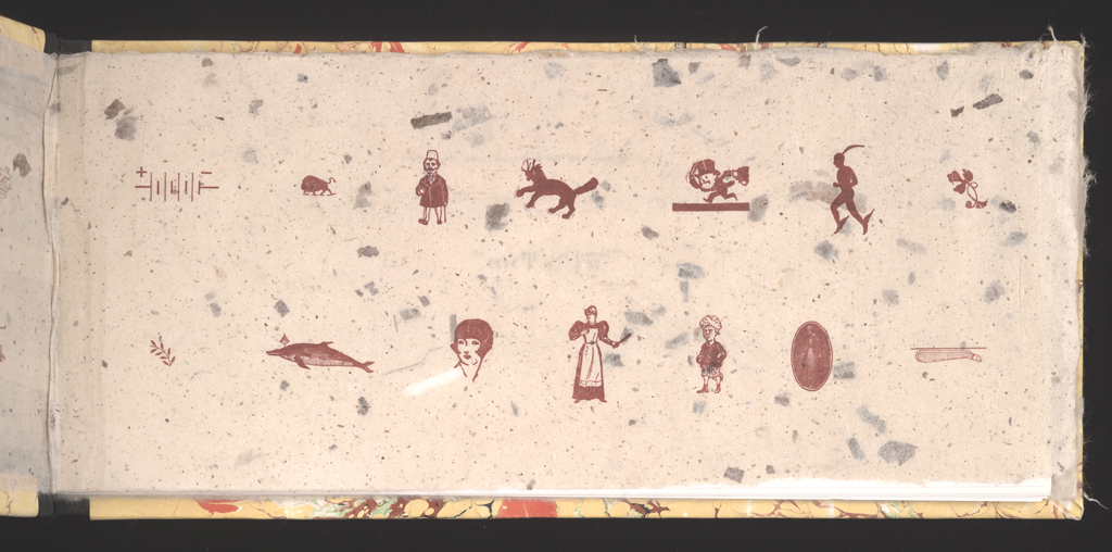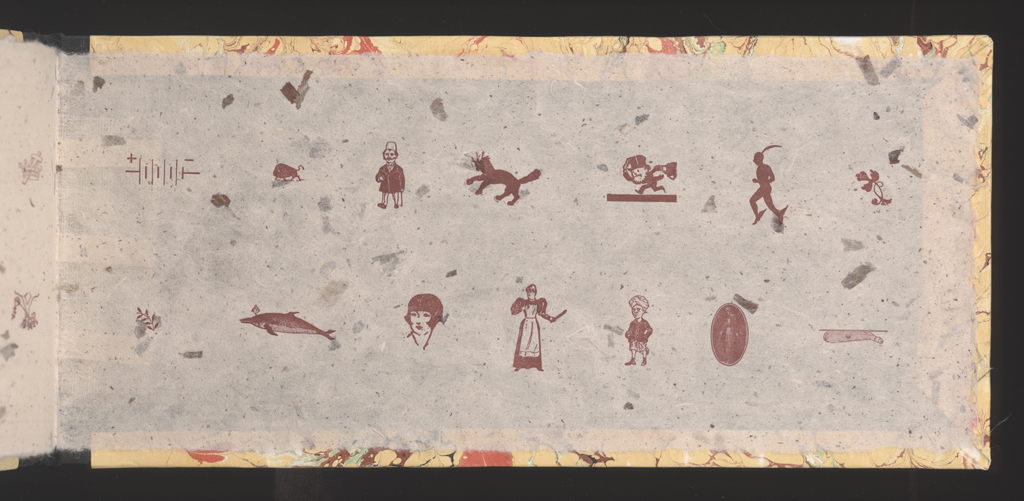 imagery: No images, really, except on the end sheets, where we printed some of the dingbats and cuts from the Bow and Arrow to make decorative papers.