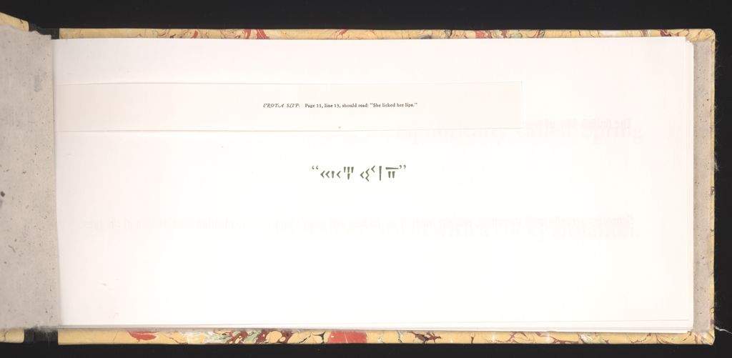other influences: Gino Lee's presence always had an influence, as did that of Jim Barondess and Charles Steele, the other Bow and Arrow habituees (Charles wasn't a printer, but a presence). Amusing them was a distinct goal of this book, particularly with the cuneiform errata slip.
