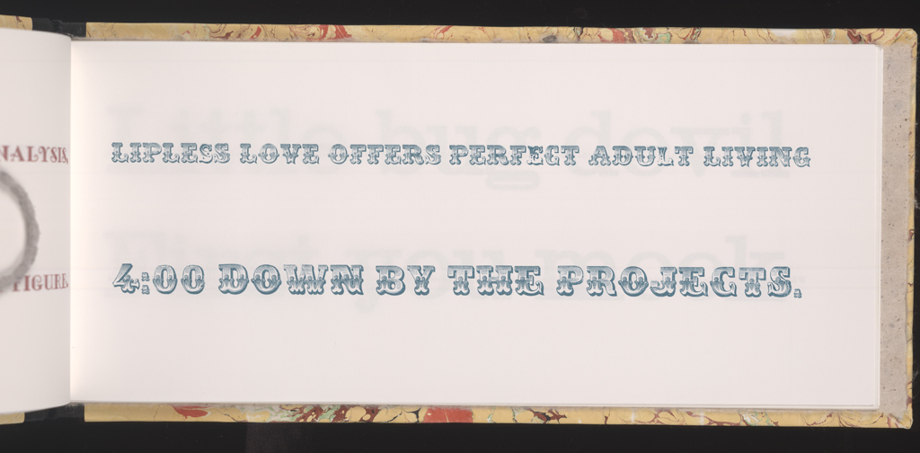 inspiration: The found language of type sample books, particularly 19th century display face samples, was a distinct inspiration for this project. The peculiar match font and tone those books embodies, often by accident, was part of the project.