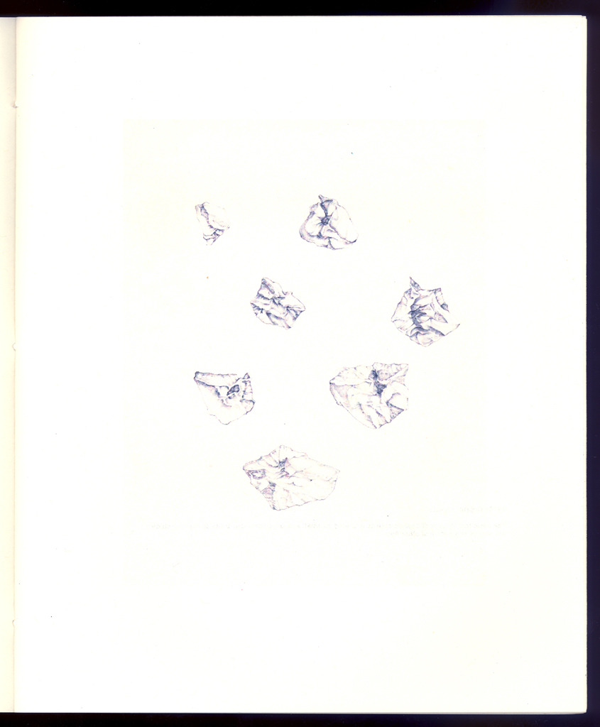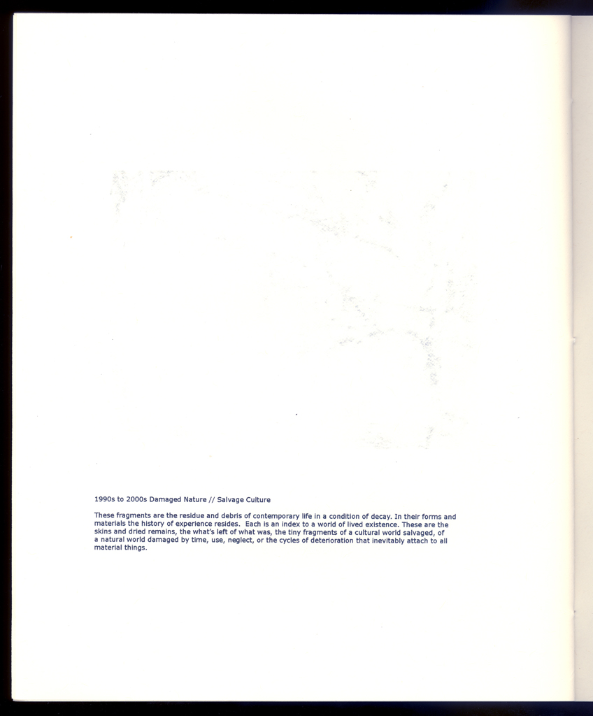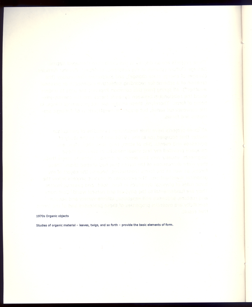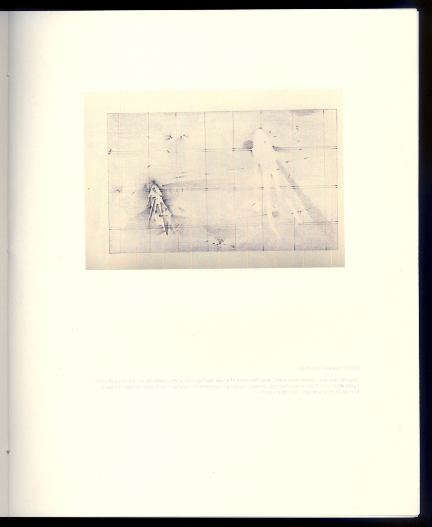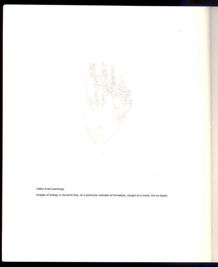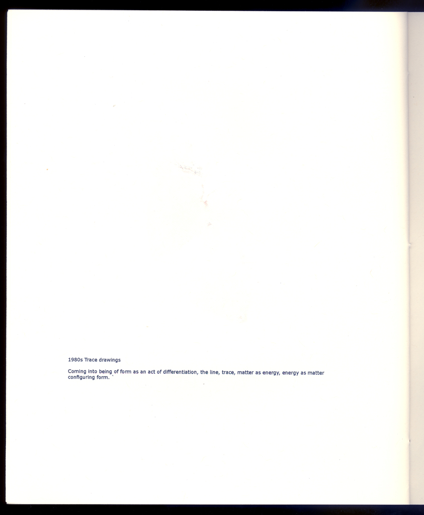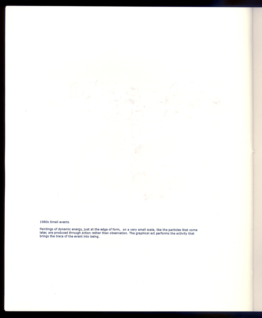 The overall project here is an ongoing study of various processes, natural, cultural, and phenomenological, through the use of graphical means (drawings of events, particles, fragments, and the aesthetics of decay, etc.). This has been a concern since the 1970s. The editioned work is a catalogue to accompany an exhibition and contains representative images from all of these various series created over more than three decades.