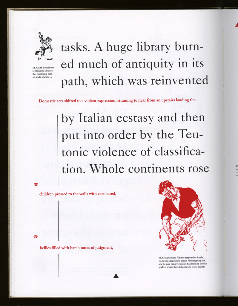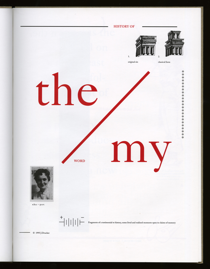 typographic: The type is used to distinguish history from memory, the received and reworked from the personal lines.