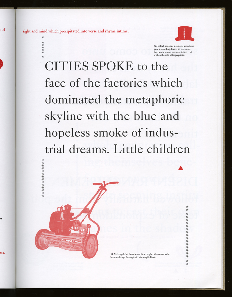 openings: The only page that uses an image across the gutter is a full spread, and it has the photographic cut of the Last Summer tableau.