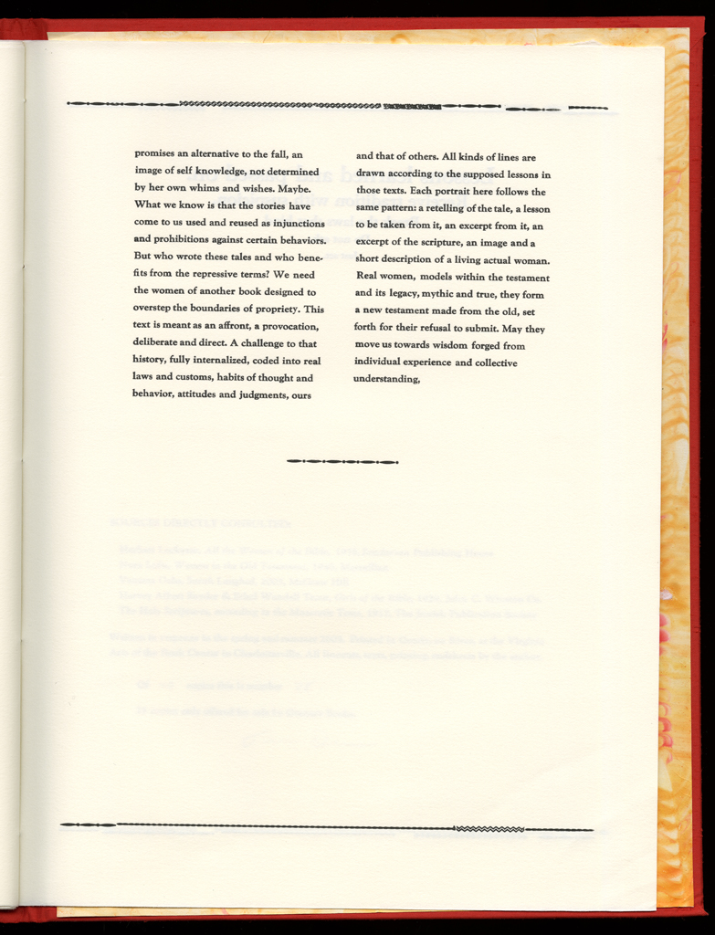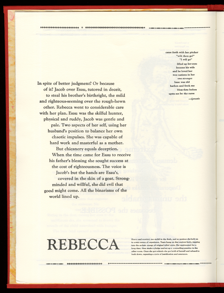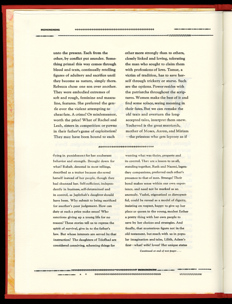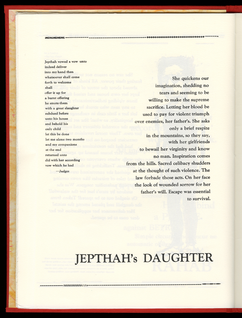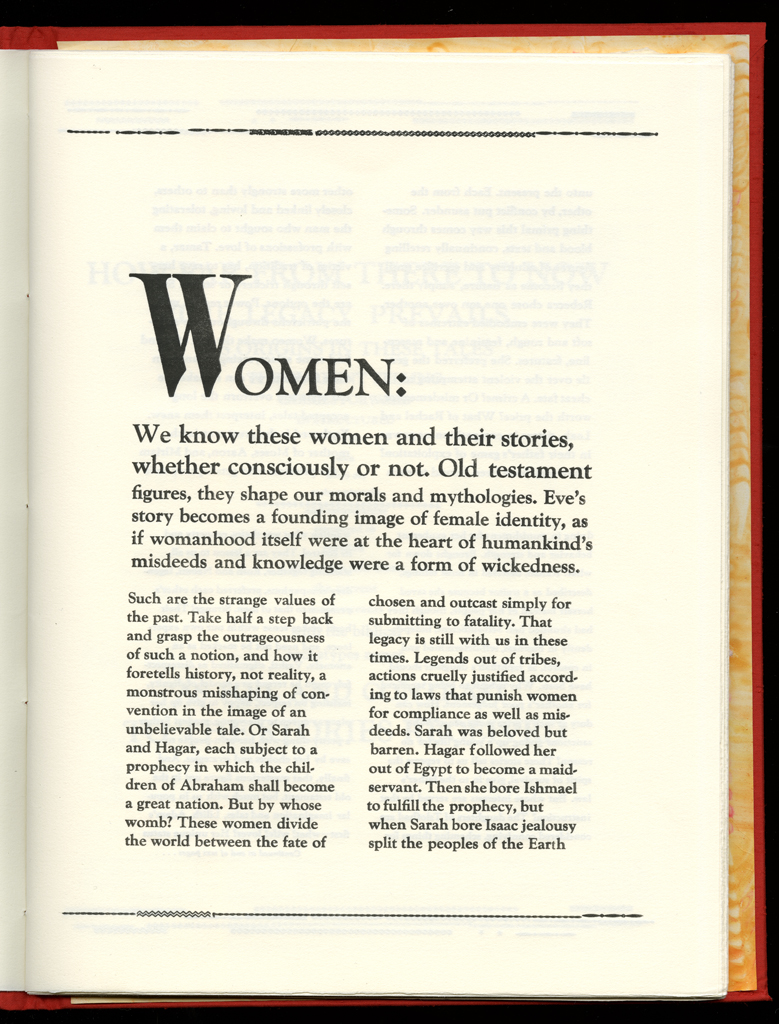 title note: The subject of the book is the retelling of tales of women who appear in the Old Testament, hence the title.
